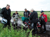 rijden door de modder en later door mul zand bij 43 graden. Het