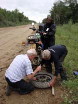 De dreiging van meer regen blijft in de lucht hangen en Piet kermt licht over zijn Hernia die maar niet wil verdwijnen. Ik twijfel of we wel moeten gaan kamperen wanneer er een SMS binnenkomt van Marlies: “Nico heeft een lekke band ik ben bang dat het wel laat gaat worden.” Mijn besluit staat nu vast en ik verstuur het bericht: “Ik zoek een hotel in Birobidzjan en SMS jullie zo snel mogelijk het adres. Veel succes met het plakken!”