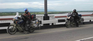 Waren de verwachtingen dat het nu met het onverharde wel voorbij zou zijn, het tegendeel is waar. Het zijn wel geen stukken van honderden kilometers lang, maar het zijn er veel en doordat het geregend heeft zijn ze ook een beetje glad. We houden het er maar op dat het niet stoffig is, maar als het weer begint te regenen en het wegdek ons glinsterend glad in het gezicht grijnst, wordt het spannend. De motoren, die door een regenbui in Blago net helemaal schoongespoeld waren en daarmee hun avontuurlijke look een beetje verloren hadden, zitten nu weer snel onder de modder; zoals dat hoort.