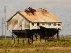 en verval, woonkazernes, houten huisjes met blikken
