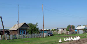 De weg van Kansk naar Sayansk is ruim 500km van allerlei soorten wegdek en de wegomleidingen zijn net zo talrijk. Alles wijzigt hier zo snel dat waar we vorig jaar nog rechts moesten, nu ineens een linsaf gegaan moet worden. Het leuke houten bruggetje over het riviertje zie ik niet meer terug. Net ervoor gaan we rechts een nieuw stuk weg op.