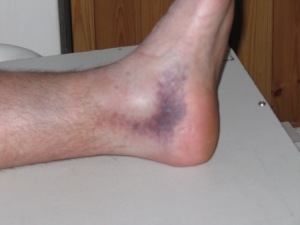 Mijn enkel is bijzonder dik en blauw en hij doet me verrekte zeer.