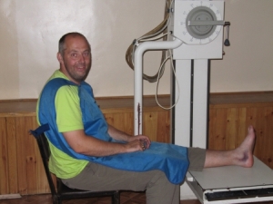 Omdat de dames zelf niet goed konden zien of het gebroken is of niet, werden we doorverwezen naar het centrale ziekenhuis in de stad. Het aangebrachte gips dient enkel ter ondersteuning.