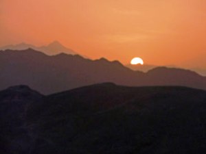 Yazd is het centrum van het Zoroatrianisme. Daarom bezoeken we ook de 'Towers of silence'. Sinds 40 jaar is het verboden maar voordien wilden de Zoroastrianen niet dat lijken de grond, vuur of lucht zouden bevuilen. Daarom brachten ze de lijken naar een hoge toren waar de gieren het kwamen oppeuzelen. De beenderen werden dan met een chemicalium opgelost.Boven op deze toren ondergaan we nu een prachtige zonsondergang.