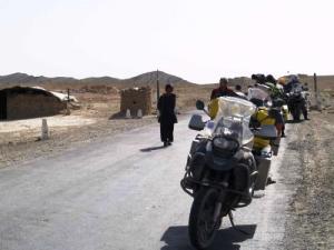 Ze begeleiden ons ook op onze ritten door het land. Dat gaat als volgt: ’s-Morgens verlaat je jouw kamer en stapt over een slapende bewaker heen die onder aan de trap ligt. Zijn machinegeweer ligt naast hem. Buiten zitten nog een paar van die heren. Die zijn al wakker. Er staan twee auto’s te wachten. We pakken onze spullen op de motor. Voor de groep vertrekt noteert iedereen eerst zijn paspoort- en visumnummer, naam en nationaliteit, naam van de vader, bestemming en datum. Dat maal 13 (personen) is een half uur.