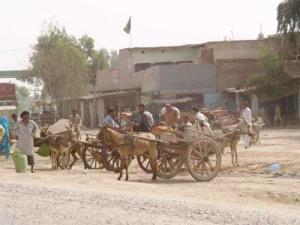 Erg grappig is een inhaalpoging van twee van de karretjes. Een van de ezeltjes moet dan in galop en daar houden ze niet zo van. En ze laten dat luidkeels merken. Dat doet ook het achteropkomende verkeer. Het woord geduld kennen ze niet in Pakistan.