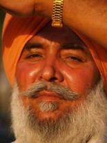 Voor de gelovige Sikh is het boek met de verzen, die tussen zonsopgang en -ondergang onafgebroken gelezen worden, het aller belangrijkste. Aan het eind van iedere dag 'gaat het boek slapen'. Rondom de draagbaar waarmee het boek naar zijn rustplaats gebracht wordt is het een gedrang van jewelste. Omdat voor de Sikh iedereen gelijk is, mag iedereen helpen dragen en dat wil dan ook iedereen. FotoRMT 2007.