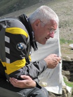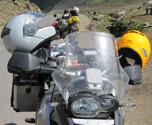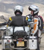 De 1200cc zware BMW rijdt eigenlijk opvallend makkelijk en dat Leentje achterop zit voel ik eigenlijk nauwelijks. Natuurlijk word ik ingewijd in het ESA-verhaal (vering); We verhogen de vering met 7cm zodat ik wat meer beenruimte heb. "Staat ie nu op hard of zacht, op hoog of laag terrein..?" Als we stoppen wordt er weer op knopjes gedrukt. "Het veert maar heeft te weinig grondspeling en maak je over ABS nu geen zorgen, hij remt zoal hij remt. Ik rij langzaam en heb voldoende ruimte dus het zal niet veel uitmaken." Toch mis ik mijn Ténéré en met allroad banden zouden we hier allemaal meer plezier hebben.