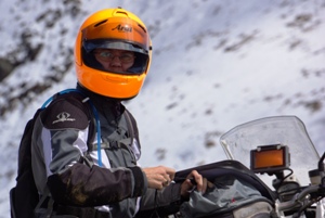 De omgeving is prachtig. Het laatste stuk de pas op houden we allemaal de hoogtemeters in de gaten. 4196 staat er op de mijne. 4192 op die van Leentje. Er ligt sneeuw. We maken foto's en zijn benieuwd naar de film uit de camera die John op zijn helm heeft staan. "Jouw crash staat er ook op," grappen hij en Theo. Nou ja, crash...