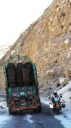 We vertrekken dus vroeg en rijden het eerste stuk vanuit Chilas langs de Indus rivier. "Hij staat relatief hoog nu want het heeft de afgelopen tijd geregend," was ons in Chilas verteld. Het eerste benzinestation heeft geen benzine, maar gelukkig is er 8km verder nog een.