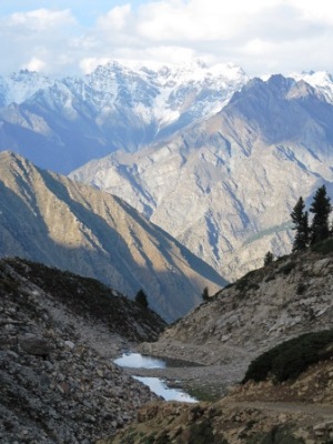 We volgen de rivier de Astor, die soms wijd is maar soms ook haar weg diep in de rotsen uitgesleten heeft.