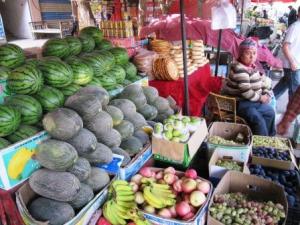 We wandelen eindeloos over de markt en strijken neer op een terras tegenover de grote moskee