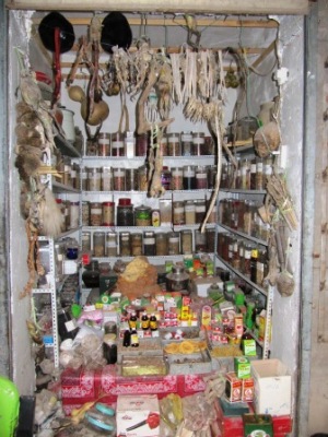 Hier worden medicinale kruiden verkocht, inclusief gedroogde kikkers, hagedissen, allelei botten en meer van de meest vreemde voorwerpen.