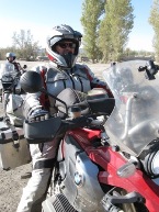 Zodra we de stad uit zijn zakt de temperatuur alleen maar verder tot zo'n 13 graden! De oorzaak hiervan is een koude wind die over de vlaktes en tussen de heuvelruggen door waait. De zon kan hier niet tegenop! Maar wat een landschap! Alleen de expresweg waar we op rijden en de vele gsm- en hoogspanningspylonen herinneren er ons aan dat hier ook mensen leven.