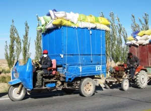 Deze expresweg, een soort snelweg die volledig nieuw is aangelegd, is een verhaal op zich. Denk je dat je rustig aan het rijden bent -het is op zich niet zo druk, voornamelijk vrachtverkeer en wat snelle jongens - opeens rij je oog in oog met een tegenligger op de linkerrijbaan! Dat is wel even schrikken. Ook hebben de Chinezen de gewoonte om op de linkerrijstrook te blijven rijden zelfs als de eerste rijstrook vrij is. Dan gaan we ze maar binnendoor voorbij. Tot we doorhebben dat ze dit deels uit nieuwsgierigheid doen. Ze steken ons voorbij, laten dan het gas los om ons dan terug voorbij te gaan waarbij ze ons gelijk gaan filmen of fotograferen!