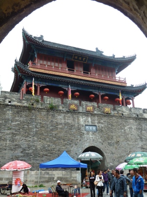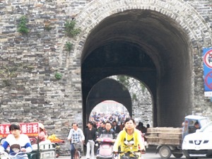 Vanaf het hotel hoeven we niet eerst de stad door om richting Jingzhou te gaan, die 18km hebben we al gedaan. Niet dat we ver te rijden hebben vandaag, zo'n 100km en het gaat allemaal wat sneller ook want we zijn de bergen nu echt uit. Het geeft ons de mogelijkheid het oude stadje Jingzhou, waarvan de stadsmuur met stadspoorten de grootste attractie is, te bezichtigen.