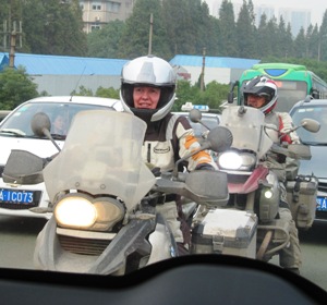 Dat dat ook betekent dat er slechts een enkele brug is via welke de motoren de Yangtze rivier kunnen oversteken, waren we even vergeten. De motoragent belt hoopvol met zijn baas terwijl hij de gedachte koestert dat hij deze 4 motorridders over de brug mag begeleiden. Maar hij vangt bot en dus werd het een lange omweg.