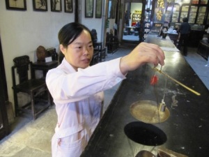 In Tunxi zelf bezoeken we 's middags de "Oude straat", waar vele snuisterijen verkocht worden en een prachtige apotheek mijn aandacht trok. Een dokter houdt er spreekuur waarna je bij de apotheek je kruidenmengels kan laten maken.