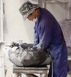 Ook voor het maken van foto's onderweg is ruim de tijd. We passeren veel dorpen waar steenhouwers wonen en werken. Hele rotsen worden uitgehold en tot vijvers, tuinornamenten en schalen gehakt, gefreesd, gepoleisd. Ook worden er inkttablau's gemaakt voor calligrafisten.