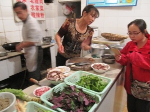 Voor Chinezen is het altijd enorm belangrijk dat maaltijden met verse ingredienten bereid worden, alhoewel ze ook veel gedroogde producten (bepaalde paddestoelen bijvoorbeeld maar soms ook vis) gebruiken. Niet dat er in de restaurants eenden, kippen en konijnen in kooitjes zitten, maar er staan wel aquaria met vis, kreeft, schaaldieren en schildpadden. Krabben liggen met een touwtje samengebonden in een bak en padden zitten in een netje. Ook de groenten ligt in bakken uitgestald. Daarnaast is er nog vaak een menukaart met plaatjes of een wand waar alle plaatjes gepresenteerd zijn.