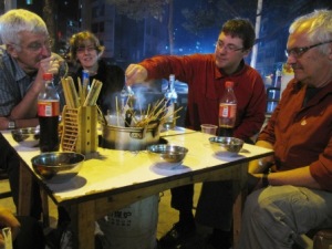 Alleen in de grote steden komen we zo nu en dan een Italiaans restaurant tegen. Ook is er fast food bij McDonalds, KFC en bij Dico's, een Chineze variant. Maar over het algemeen zijn de restaurants allemaal Chinees en is er keuze uit noedel restaurants, hotpot restaurants (fonduen in bouillon). Steengrillen heb ik ook een keer gezien en dan is er de straat-barbecue.