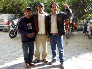 Dafne de Jong, 15-11-2007: "De MotorKaravaan kon de derde etappe van haar reis rond de wereld niet beter beginnen dan met het welkom van Keshab, Robin en Laxman van Hotel/Pension Vasana in Kathmandu op 11 november jl."