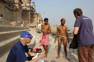 Dafne de Jong, 19-11-2007: "Er worden zo tussen de 75 en 150 lichamen per dag langs de Ganges in Varanasi gecremeerd. “De Ganges is een schone rivier,” staat er in onze reisgids. Waarschijnlijk is hij zo vervuild dat zelfs schadelijke bacterien er niet in kunnen overleven, bedenk ik me."