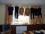 naast elkaar op de vier matrasjes met onze kleren/motorpakken