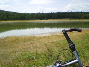 Nog een rustdag op Olkhon. De weersverwachting is gunstig. Leon en ik hebben het snode plan opgevat om op de fiets naar de andere kant van het eiland te fietsen. Ruud zou ook mee, maar besluit (wijselijk?) om de dag in & om het dorp door te brengen. Van de fietsenverhuurster hebben we een klein kaartje meegekregen bij wijze van routebeschrijving.