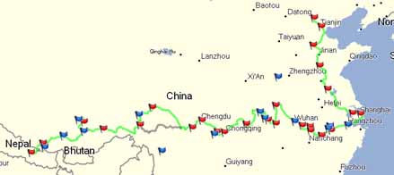 In China kunnen we dus niet door Tibet rijden deze keer. Jammer, maar het maakt de reis niet minder interessant. We zullen veel kloosters, heilige plaatsen, bergen, de drieklovendam en nog veel meer zien voor we in Shanghai komen. Van daaruit rijden we door naar Peking.
