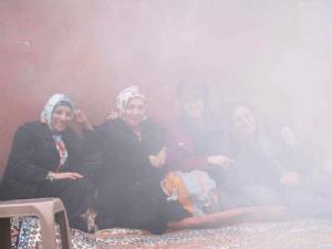 De dame in ons gezelschap verdween op dwingend verzoek van de autoriteit onder een sluier, een exemplaar thuis aangeschaft. Werkelijk, het vod zag er niet uit. Een Iraanse met twee kinderen wenkte naar haar. Kom, jij bent een vrouw, jij bent een van ons, kom. Hier eet en pak deze sluier aan. Zij gaf haar een van haar eigen mooie sluiers.