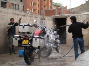 De rit gisteren, naar Tabriz, was geen pretje. De harde wind stond schuin van voren. Ik heb honderden kilometers plat op de motor gelegen en heb diverse begrafenissen aan me voorbij zien trekken.
