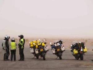 Heel slecht nieuws!!! Vering van Ludo is dus toch stuk, weer een grote plek olie onder moto. Hij kan er wel op rijden maar de vering dempt niet meer. Bijgevolg gaat hij de hele tijd op en neer en na een kuil deint hij nog meters verder na. Zijn maag slaat er van om.