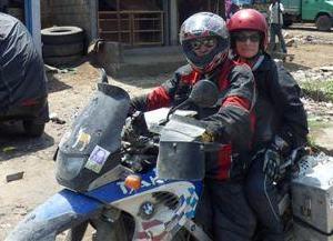 Jolanda en ik zien er allerschattigst uit. Ik heb een motorbroek mogen lenen van Carine en met een jasje van Sjef en mijn 2e hands helmpie kan ik zo meedoen met ...